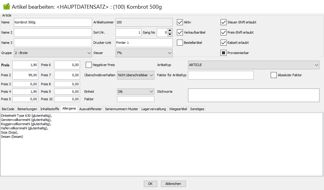 Die Eingaben in diesem diesem Dialog können über ein langes drücken auf einen Artikel an der Kasse angezeigt werden. Im o.g. Beispiel wurde der Text mittels HTML Formatiert